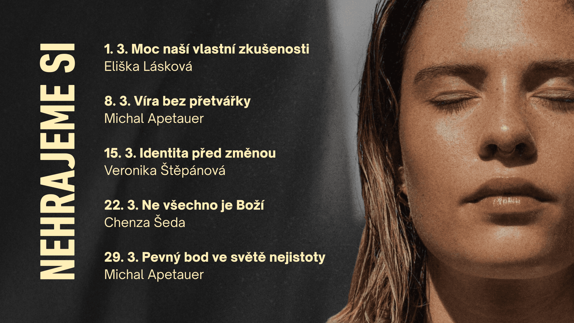 Kolik věcí v naší době zní na začátku dobře, ale uvnitř nedrží?V březnu otevřeme 1. list Janův – dopis, který nestaví víru na frázích, ale na osobní zkušenosti. Jan mluví o něčem, co jsme sami zažili a čím jsme si osobně prošli. Víra nemá být teorie ani ideologie, ale setkání, které člověka proměnilo.Z téhle zkušenosti pak roste opravdovost. Ne hraní si na lepší verzi sebe, ale pravda o tom, kdo opravdu jsem. A právě tahle pravda není konec příběhu – je to začátek změny. Jan ukazuje, že vztah s Bohem se pozná v životě: v tom, kam se člověk obrací, co ho vede, co v něm postupně dozrává. Do toho přidává identitu: nejsme jen lidé, co se snaží “věřit správně”. Jsme Boží děti. Ne jako nálepka, ale jako základ, ze kterého se dá žít. A z té identity pak vychází láska k Bohu – ne jako povinnost, ale jako odpověď. Láska, která dává měřítko: co je pravé a co je jen hluk, trend nebo zbožná póza. A nakonec stabilita. Ne stabilita z výkonu nebo nálady, ale něco, co drží i ve dnech, kdy nejsme v pořádku. Víra, která se nerozsype.Zveme tě do série na 5 nedělí z 1. Janovy. Chceme se podívat na to, co v životě opravdu drží. Pokud jsi v církvi roky, nebo víru teprve zkoumáš, tenhle dopis má sílu pomoct ti srovnat věci na pravé místo.